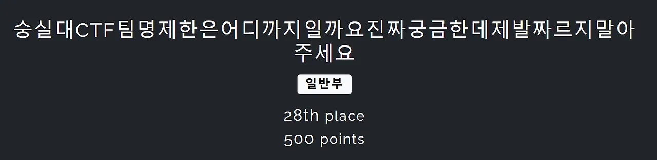 보안에 흥미가 생기자마자 경기과학고에서 여는 WaRP CTF 공고를 보게 되었고 마찬가지로 웹 1솔로 마무리 했다.