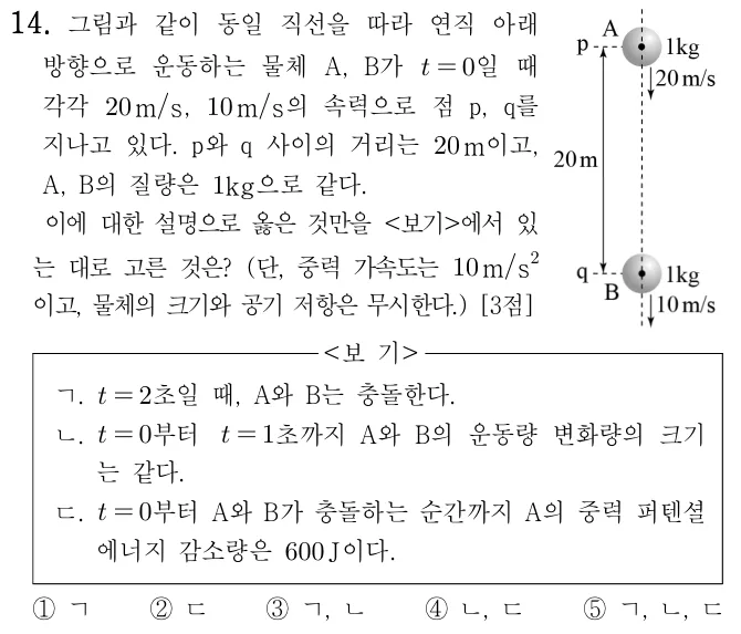 이 둘은 중력가속도 10m/s2을 받아 2초 후에 충돌한다.