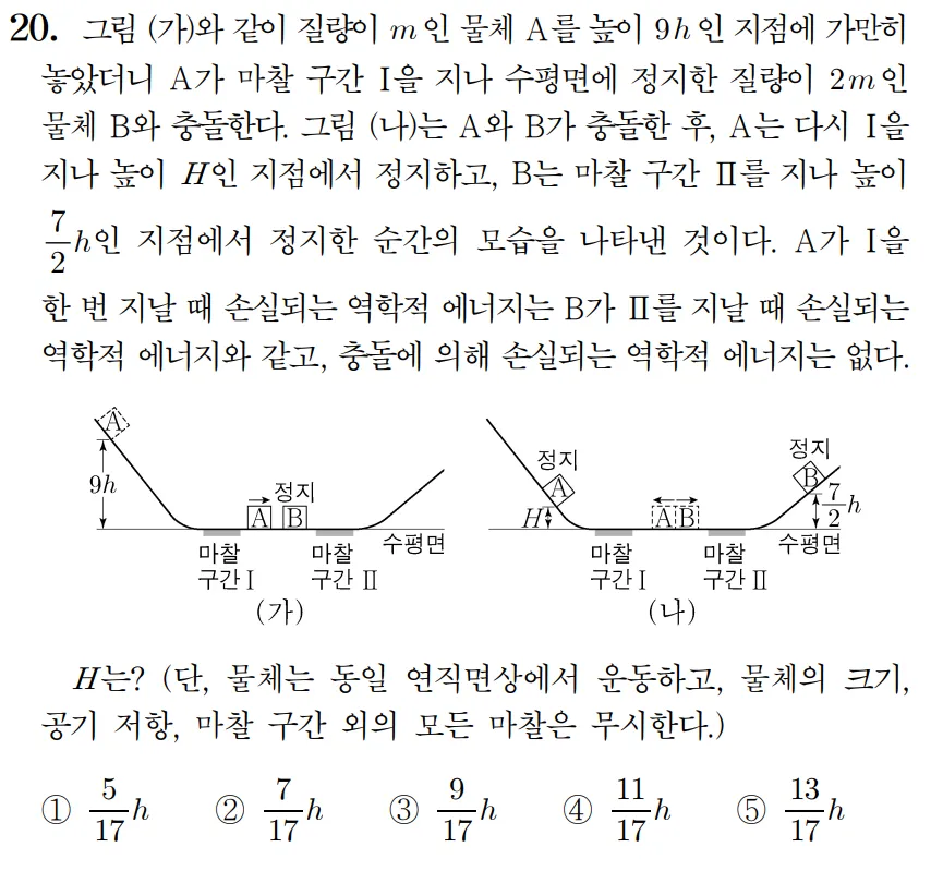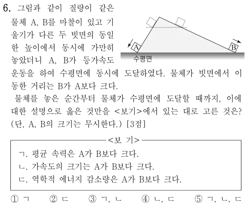 - vb>va 이므로 Ekb>Eka 따라서 A가 역학적 에너지를 더 많이 잃었다